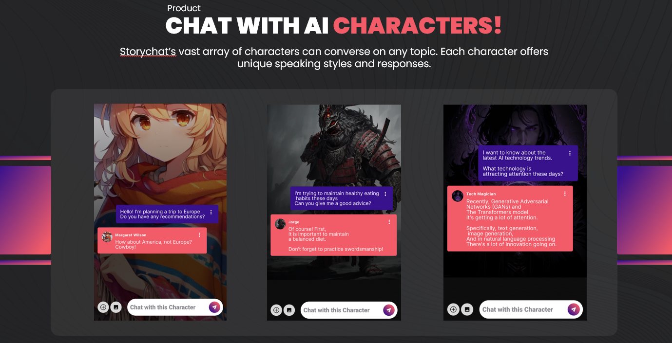 Storychat은 이러한 기능들을 통해 사용자에게 혁신적이고 다양한 대화 경험을 제공합니다.