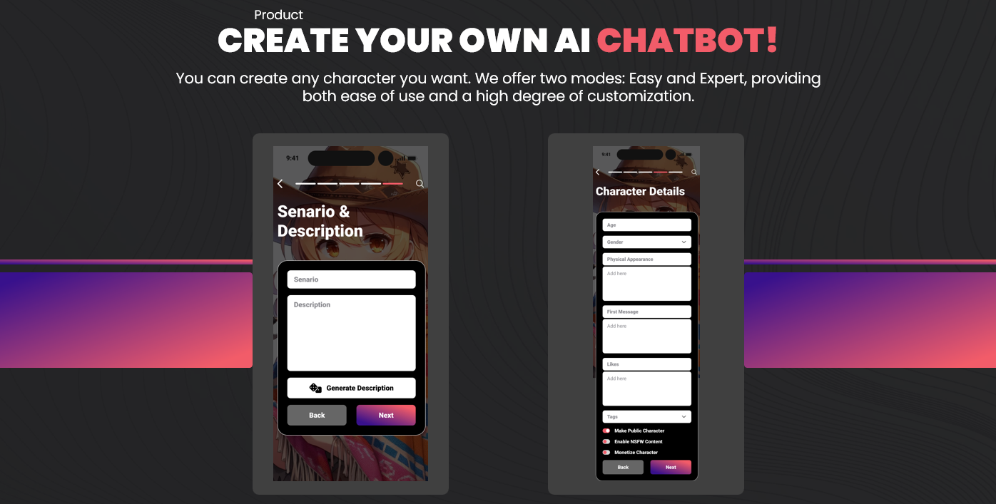 사용자는 자신만의 캐릭터를 만든 뒤, 커뮤니티에 공유하지 않고 캐릭터와 은밀한 대화를 즐길 수도 있고, 매력적이고 개성 있는 캐릭터를 만들어 Storychat 커뮤니티에 공개한 뒤 Chatbot Maker가 되어 수익을 창출할 수도 있습니다.