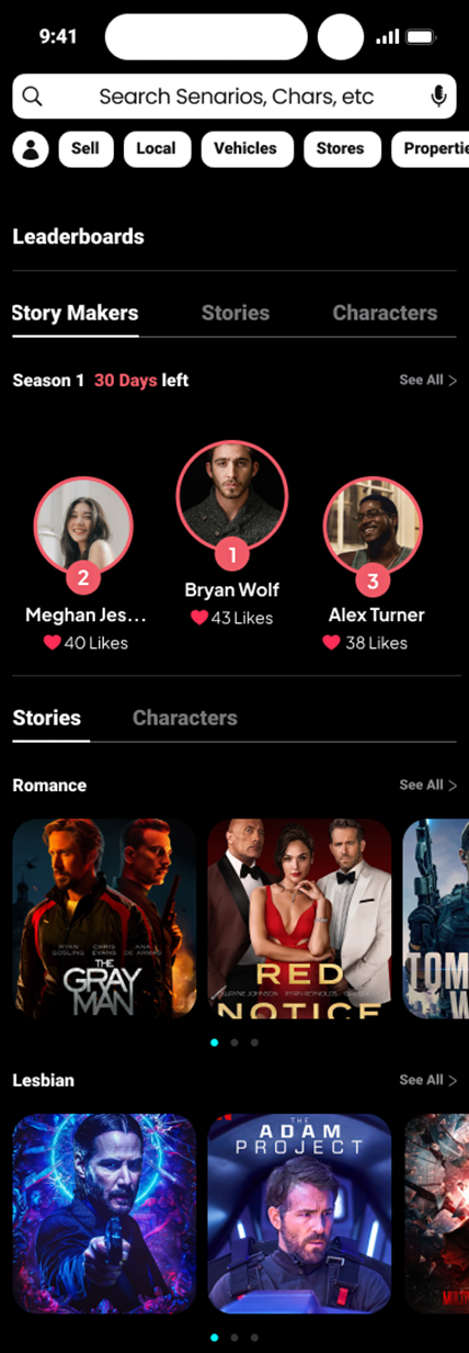 기본 UI를 통해 높은 순위의 캐릭터와 스토리를 탐색할 수 있으며, 사용자가 직접 검색 기능을 통해 원하는 캐릭터나 스토리를 찾을 수도 있습니다.