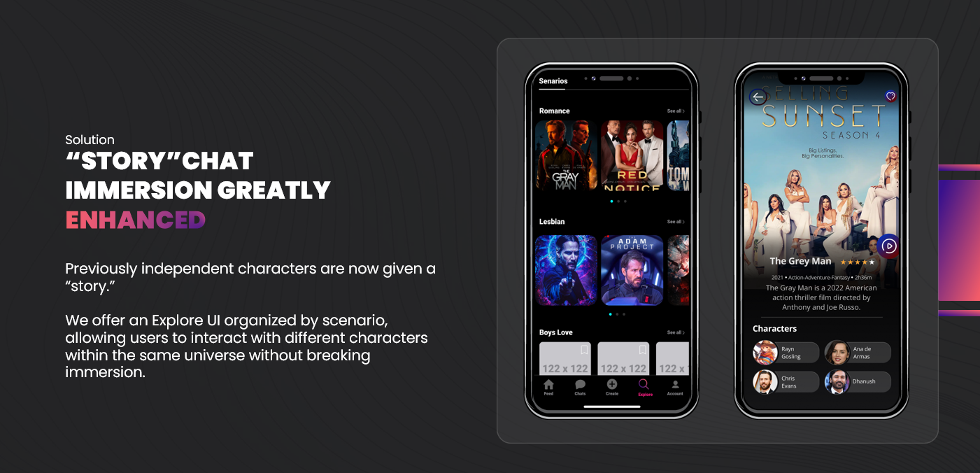 Explore 기능을 통해 사용자는 Storychat의 다양한 콘텐츠와 크리에이터를 쉽게 탐색하고, 흥미로운 스토리와 캐릭터를 발견할 수 있습니다.